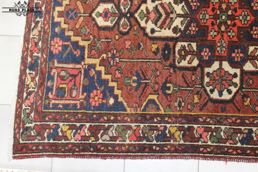 The sizes vary from narrow hall carpets to large room designs, often up to 4 m × 5 m. The larger rugs tend to be very rare and harder to come by. Similarly, older rugs, often coveted by collectors, can be extremely costly. Patterns are usually floral or garden inspired. The Khesti, an established garden motif is perhaps the most well-known rug design. The carpet is divided into individual squares with animals and plants acting as symbols. Another influential design features a decorated field with lattice designs and floral ornaments. The use of colors varies depending on styles of certain tribes. Generally they include shades of white, reds, browns, greens, and yellows. Blue does not appear to feature.[citation needed] Natural dyes produce variations in color, which are particularly obvious on older Bibibaffs.