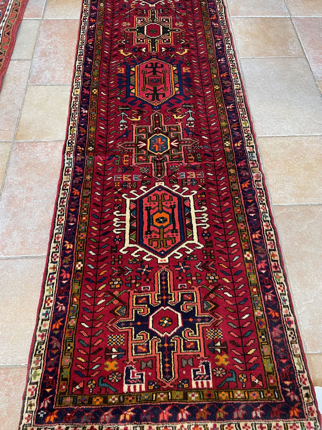 Heriz rugs are of coarse construction. The rugs range from 30 kpsi on the low end to 100–110 kpsi on the high end. It is rare to see a rug over 100 kpsi that would look like an authentic Heriz unless it is an antique silk Heriz.