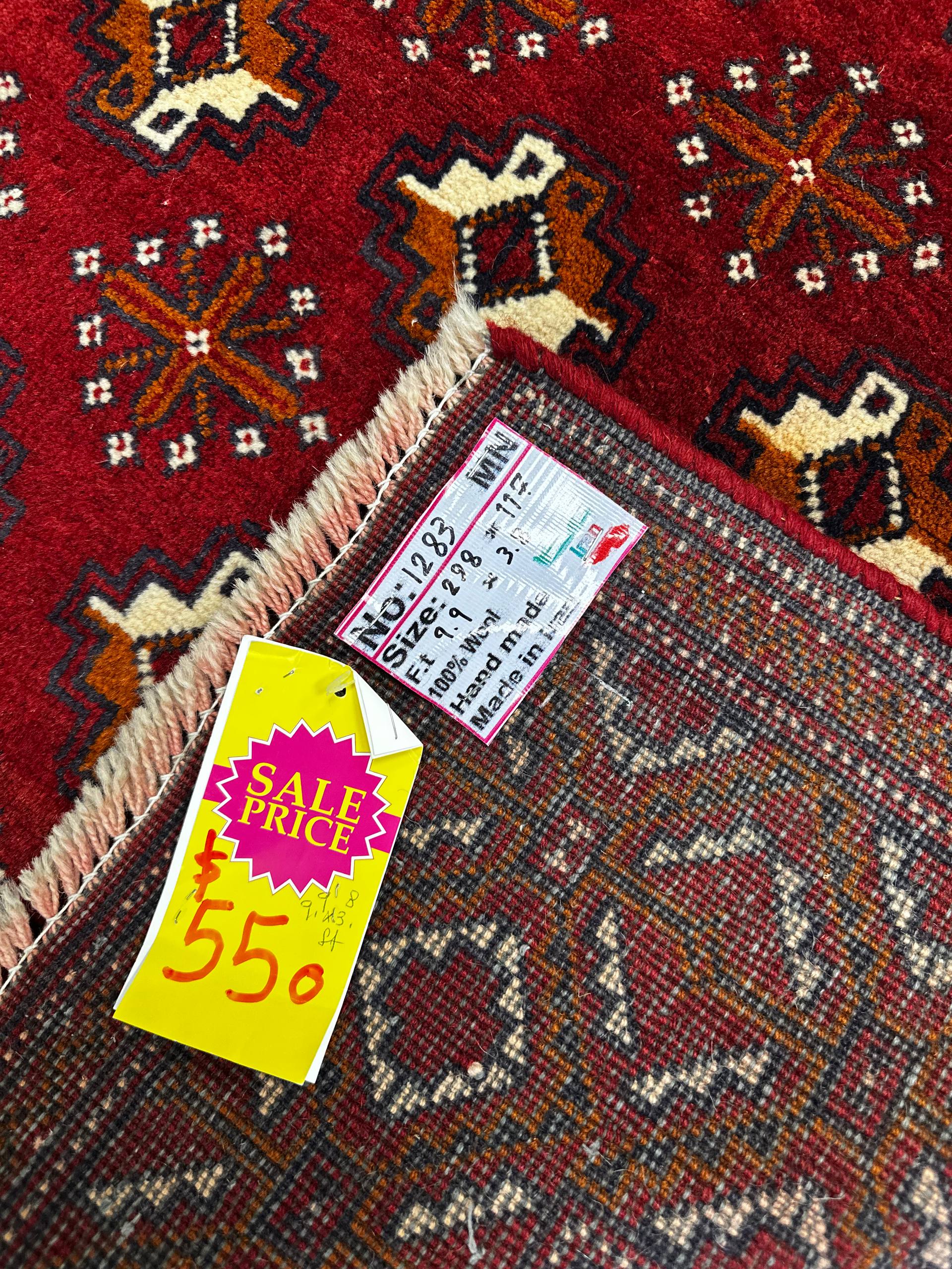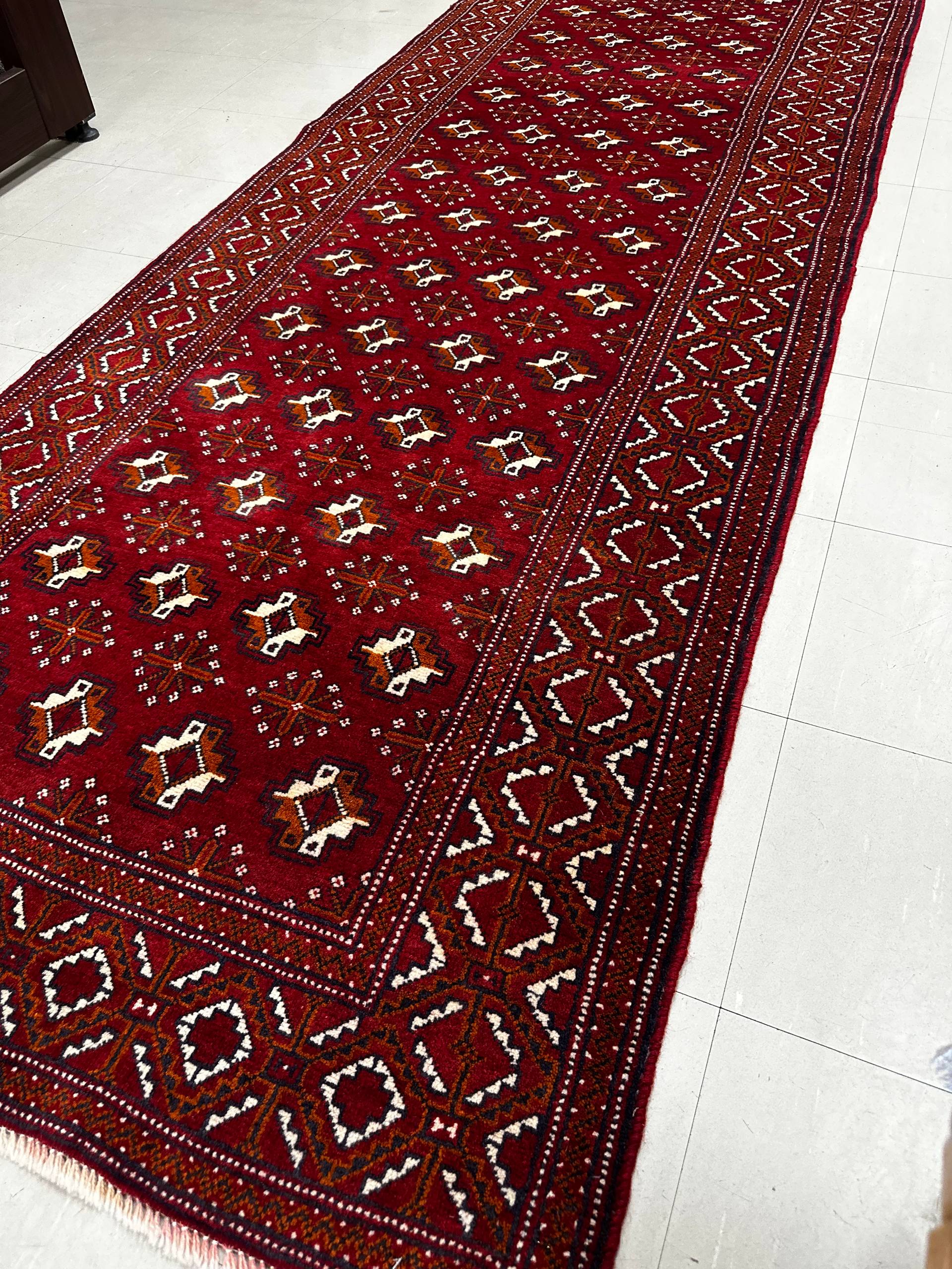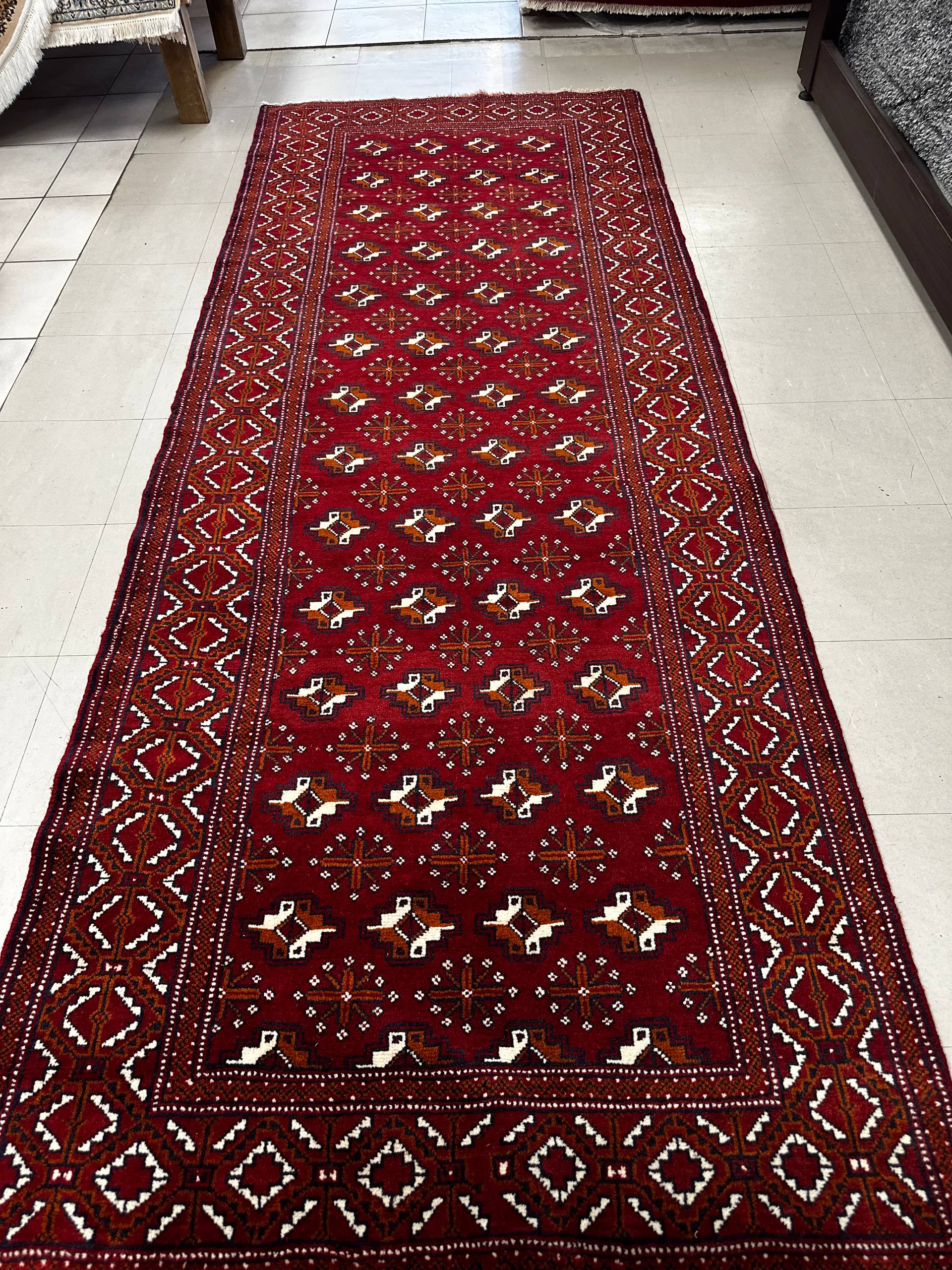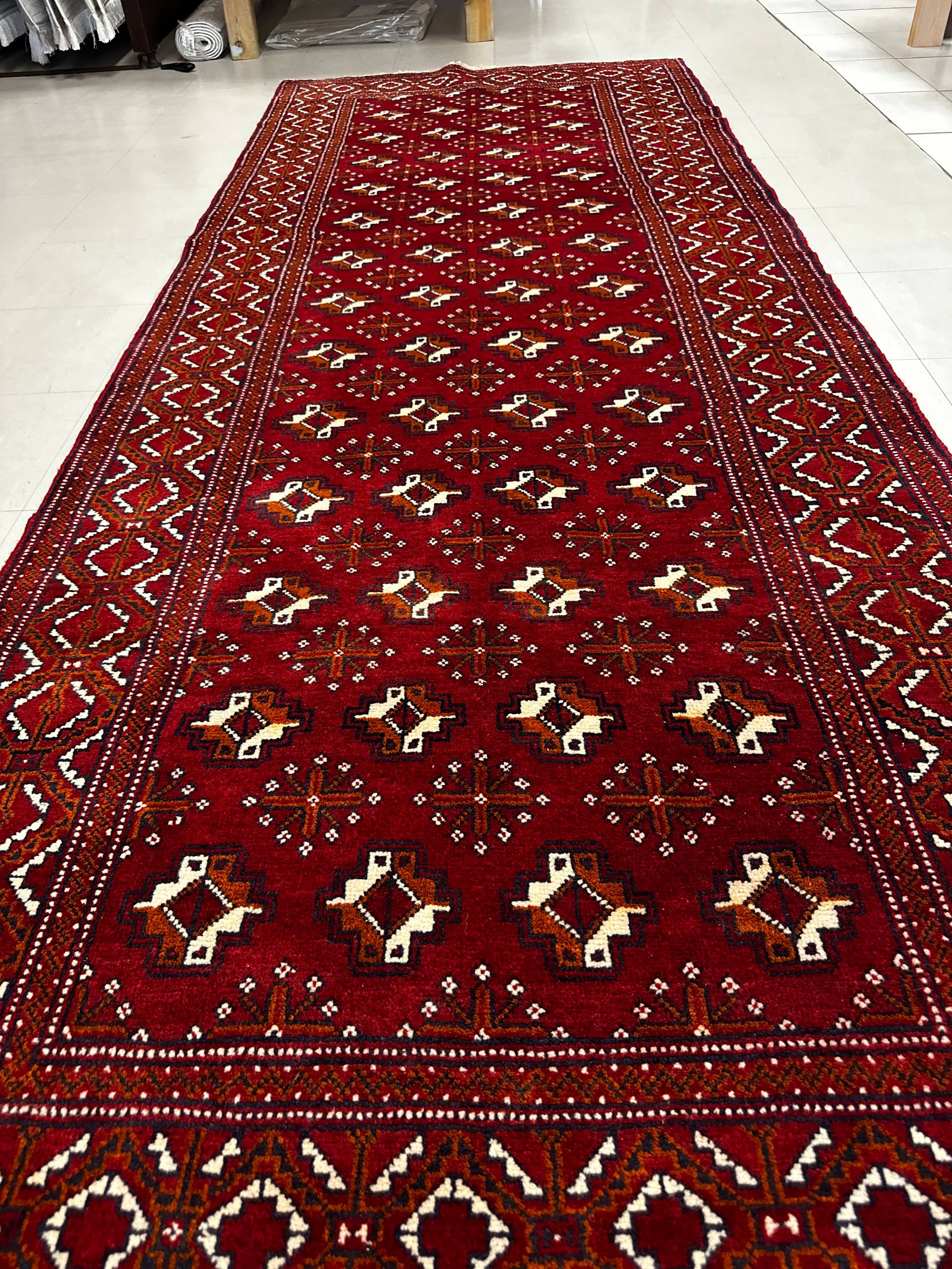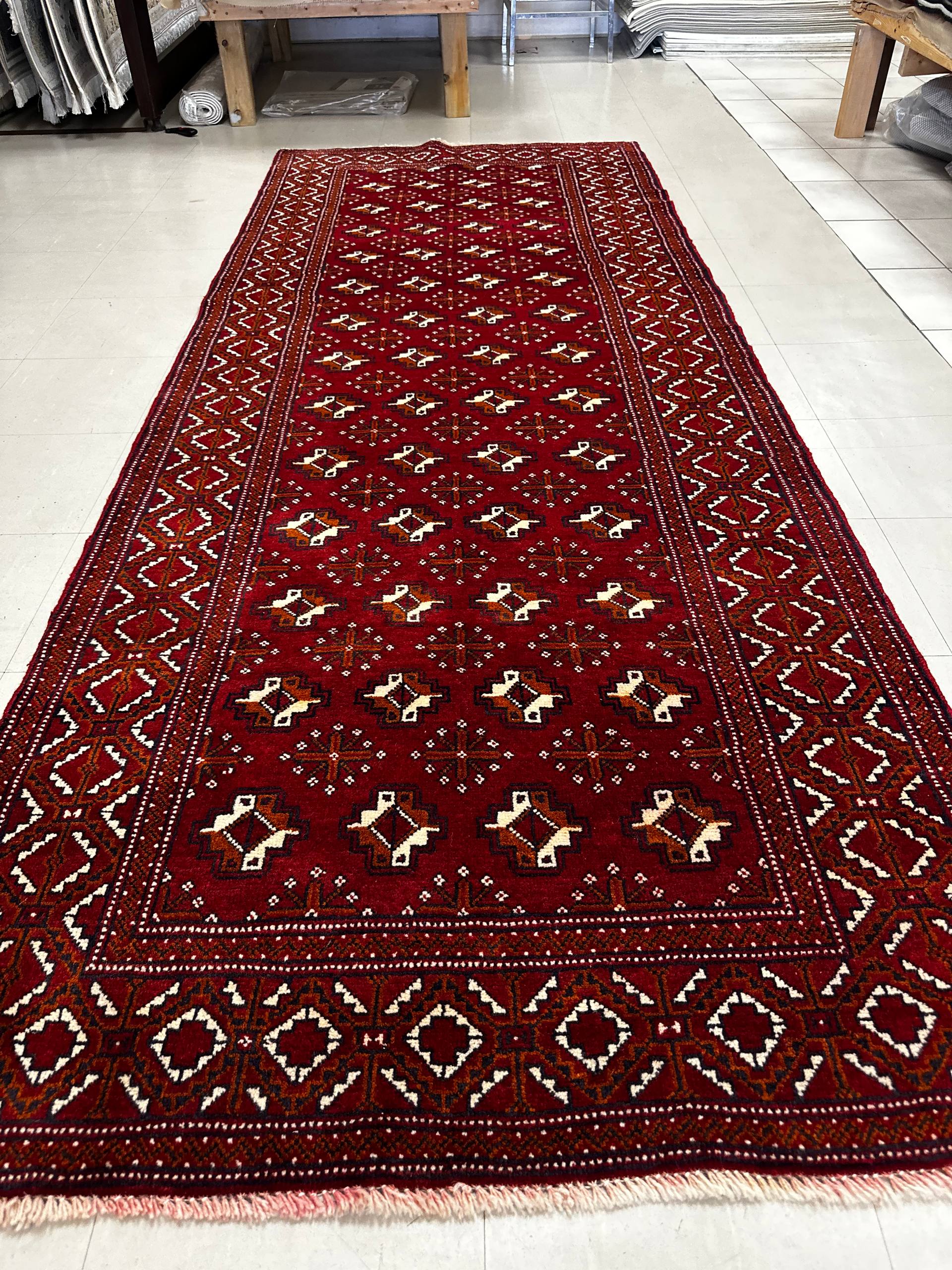 Balu. They are handmade and 100% wool with a 100% cotton foundation. These carpets are often small with lively patterns. The dominating colors are usually red, brown, and dark blue. And the warp is wool or a mixture of wool and goat hair. Turkaman