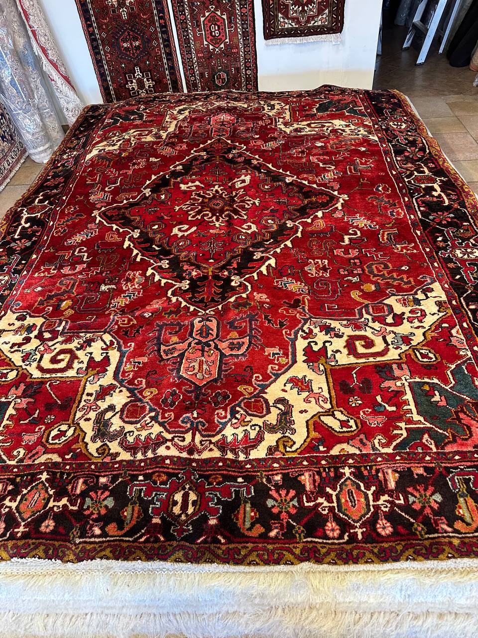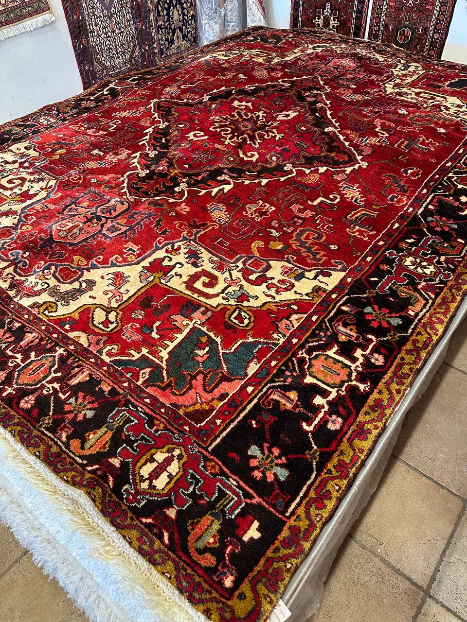Heriz rugs are made from wool on a cotton base. excellent for high-traffic areas.