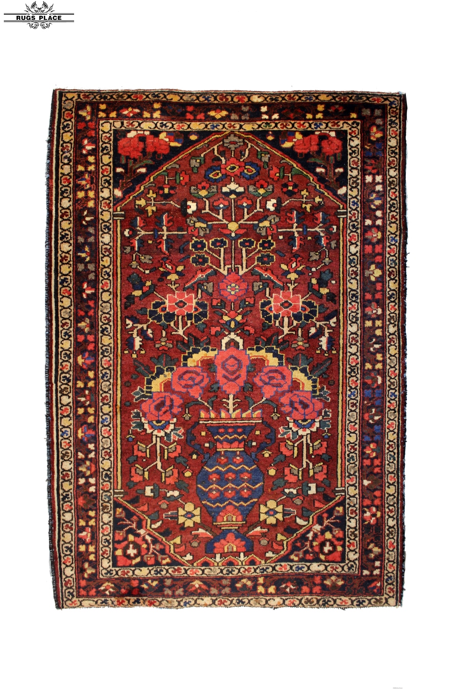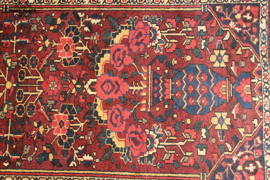 While originally woven by nomadic Bakhtiari, most authentic Bakhtiari rugs are woven in Bakhtiari settled communities in west central Iran southwest of Isfahan. Bakhtiari carpets are based on a cotton foundation (warp) with a wool weft usually taken from the herds of the producing tribe. Patterns are usually floral or garden inspired.
