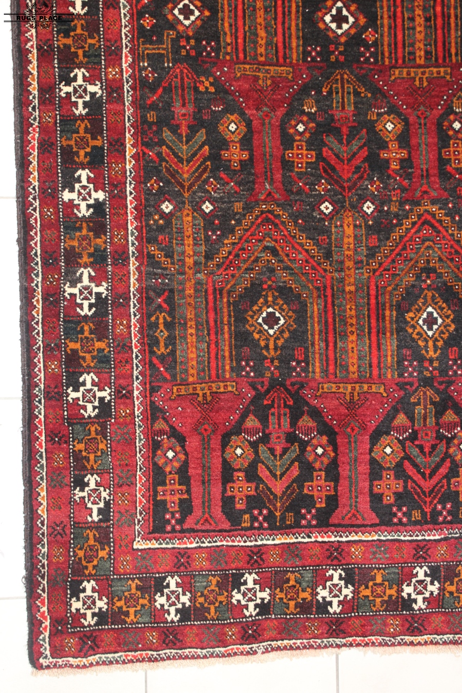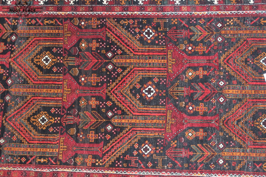 Baluch rugs are woven by the nomadic Baluchi ethnic groups of Baluchistan, in southeastern of Iran. Persian Traditional, Tribal style rug with Copper, Cream, Dark Brown, Dark Navy, Red accent colors. Imported from Persian and crafted using the finest weaving techniques. Hand-knotted and constructed from 100% Wool with 100% Cotton foundation.